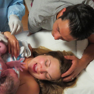 The pitocin seemed to kick in pretty quickly. By 4 am the contractions were getting uncomfortable and were 3 minutes apart. Caitlin came to the hospital. As they got more intense, I leaned over the bed. Caitlin massaged my legs and back which helped take my mind off of the contractions. She suggested we ask the nurse to turn down the pitocin since I was in a steady labor pattern already. The nurse checked me and turned the pitocin down! Whew, this helped! Contractions were uncomfortable but still manageable. When the doctor came in at 9 am, he turned the pitocin back up. Things got intense very quickly after this. At this point we were not talking anymore. I would tell Caitlin and Trent when I was having a contraction, and they would push on my lower back and squeeze my hips. The contraction intensity kept escalating. I was really starting to doubt if I could get through this, and I started wanting pain relief. The nurse checked me, and I was 7 cm. I decided I wanted the epidural. She said I had to get through a full bag of IV fluids first. I started vomiting, and Caitlin came to the rescue with peppermint oil. I was starting to get vocal with each contraction. The IV bag was finally empty! The nurse made Caitlin leave the room while I was getting the epidural. She checked me one last time because she suspected I was close based on the way I was acting. I was 8-9 cm. My husband told me to keep going since I was almost there, but my mind was already made up. While the anesthesiologist was giving me the epidural my water broke! It was so hard trying to stay still through the contractions. When he was done and Caitlin came back in, she was excited to hear I was 8-9 cm and my water broke! The nurse checked me again 15 minutes later, and I was 10 cm! The baby was still high so I didn't start pushing for another 45 minutes. Caitlin was so helpful in recommending positions to help baby come down. One good thing about me getting the epidural so late was that I was still able to move some. I lifted my legs on my own to put in the stirrups, and I could feel some pressure to know when to push. I pushed for about 30 minutes, and baby girl was born!